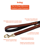 Walk your fluffy friend in style with Le Dog Company's Padded Leather Leash. Designed for your maximum comfort with a padded handle and functionality with a "D" ring to attach your Le Dog Poop Bag holder.